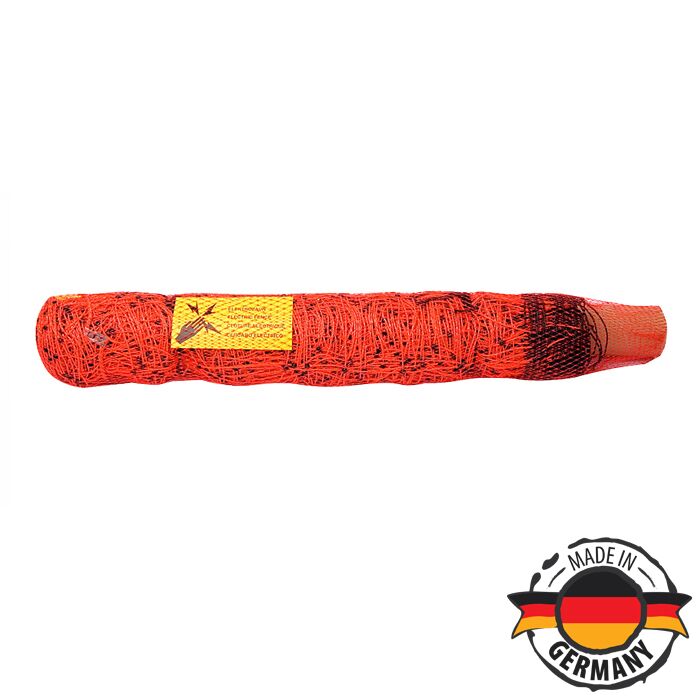 The net is manufactured in Europe from Polyurethane with metal filaments running through the horizontal strands (apart from the bottom base line). The net is mounted on PVC posts. To โchargeโ the net an Energiser is connected to the net and to the ground via an earth post. This forms an open circuit. When an animal comes into contact with the net and ground it completes an electric circuit and gets a shock. This is why the net itself does not need to be erected in a loop and can be erected in a straight line if required. The Energiser produces a high voltage pulse approximately once every second. Foxes, like most animals, investigate unfamiliar additions to their environment and it is at this point that the shock is delivered. Although the net is not of insurmountable height, once the animal has been shocked the net will be a sufficient enough psychological barrier and the animal will be highly unlikely to attempt to breach it.