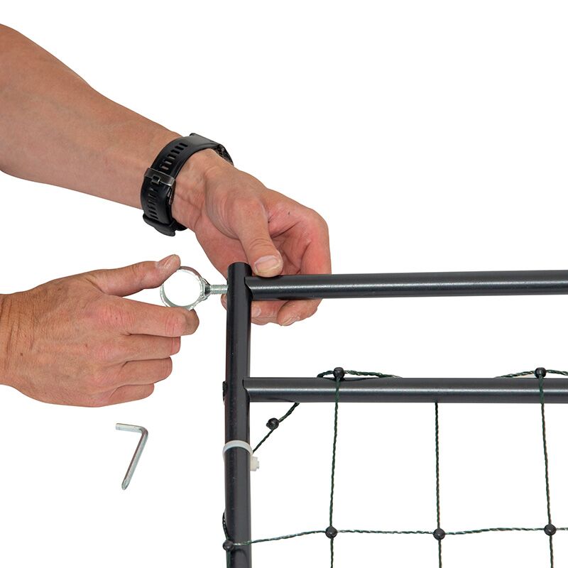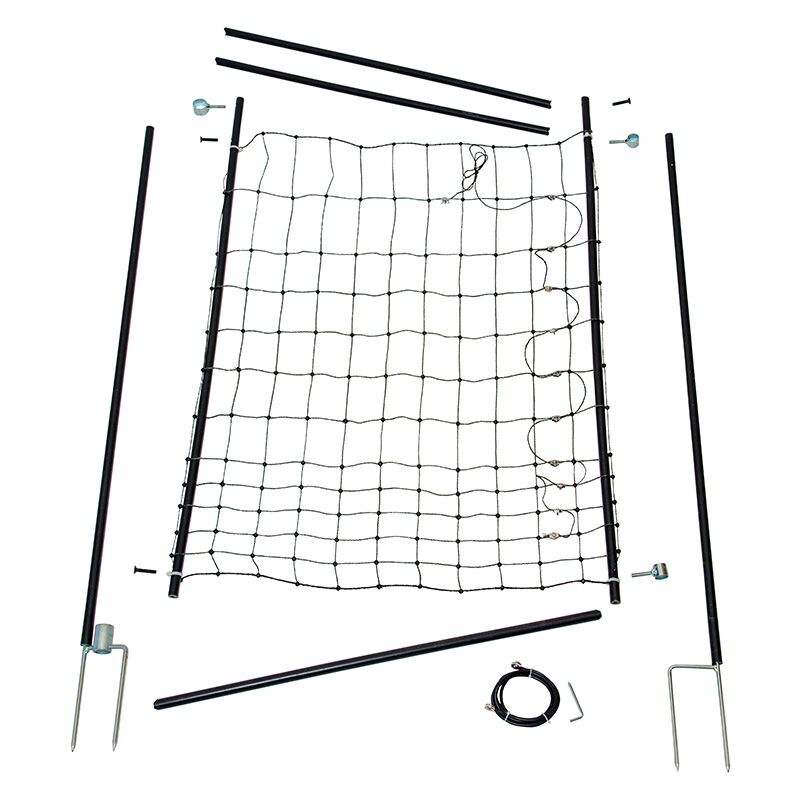 You will receive the poultry net gate as a DIY kit, including sturdy posts with double tips as well as connection and joining accessories.