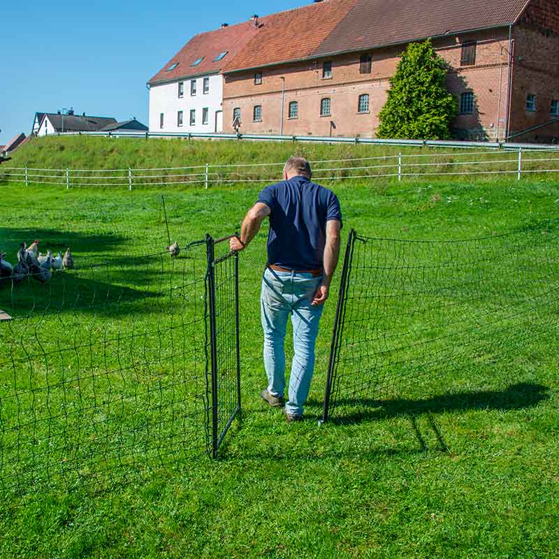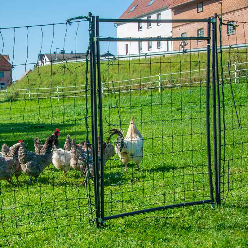 Gain quick and easy access to your pasture area with the Horizont Hotgate – ideal for keeping your animals such as geese, chickens, turkeys, sheep,s and dogs.